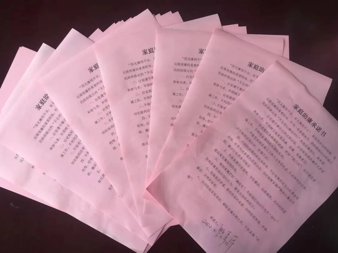为进一步做严做实对党员干部日常教育管理监督,通过与机关干部家属签订《家庭助廉承诺书》、发放提醒卡等方式,督促机关干部家属承担起家庭守廉的责任。通过抓住关键,定期向机关干部发送廉洁自律提醒短信,特别是在重要节日、重大活动前夕,提醒机关干部过好“廉”节、把好“廉”关,筑牢拒腐防变思想防线。