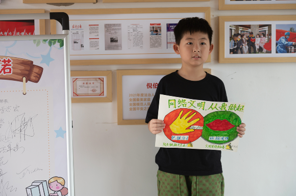 参加活动的亲子家庭各自进行了网络文明宣传语海报制作,完成制作后都进行了展示。