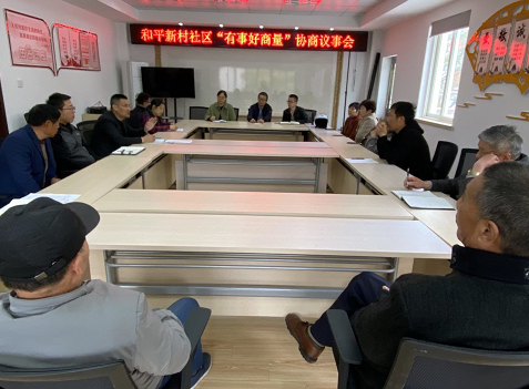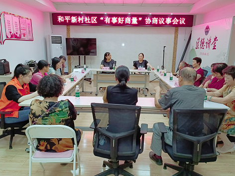 “群众的事同群众多商量,大家的事人人参与。”和平新村社区通过“有事好商量”议事会这一平台,让居民群众在社区实现自我管理、自我服务、自我教育。社区大小事务通过“有事好商量”议事会,及时了解居民群众的所需所求,有事多商量、遇事多商量、做事多商量,让社区居民更好当起"主人翁",从而有效地推动了社区建设发展的步伐。