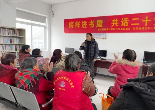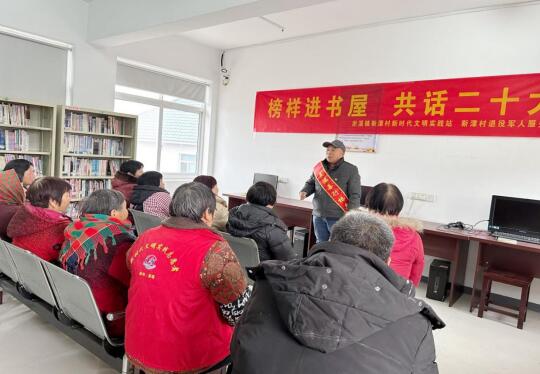学党史,强信心,守初心,担使命。2月17日,淤溪镇统战部门、靳潭村退役军人服务站联合靳潭村民兵营组织开展了“榜样进书屋,共话二十大”专题活动。活动主要围绕学党史,学党的二十大精神等方面展开,靳潭村参战退役老兵及美德善行标兵袁亮信同志讲述了他的参战经历和回村后致力于村庄环境整治心路历程,淤溪镇周庄村“兵书记”缪振中同志从资金筹措、村庄规划与设计、村庄环境整治、乡风文明建设等方面讲述如何创建全国特色田园乡村,留得住乡愁,留得住乡贤。贴身的经历,深入一线群众的故事,让现场的村民代表纷纷喝彩。村民代表姚扣兰表示:“党的二十大精神聚人心,作为刚退休下来的老干部,缪支书对周庄村创建特色田园乡村的经验对我村即将创建特色田园乡村很有启示,我对新一届村两委班子有信心,有期待!”
