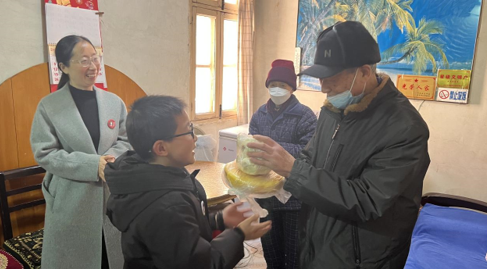 社区工作人员带着另外一组小志愿者来到高龄老人家中。孩子们送上了蛋糕和包子,还有健康包等防疫物资。当得知这些蛋糕和包子是孩子们亲手做的,老人们一个劲地夸赞孩子们能干、厉害,脸上洋溢着开心幸福的笑容。温情在这里流淌,希望在这里延续。孩子们在活动中感受到关爱他们、为他人付出的快乐与幸福。
