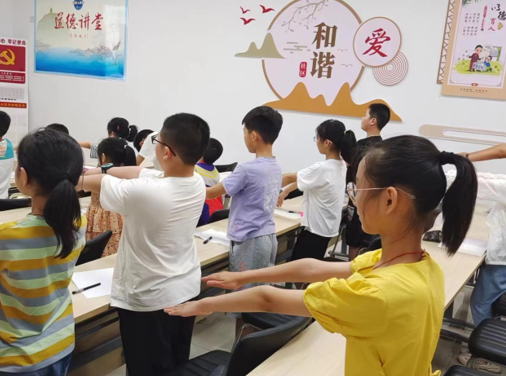 暑托班开展一段时间后,志愿者发现部分小朋友羞于表达,随后经沟通调整,暑托班增设演讲与表达课,加强在口才训练、肢体语言运用、声音控制等方面的训练,切实提升小朋友们的表达能力和演讲流利度。