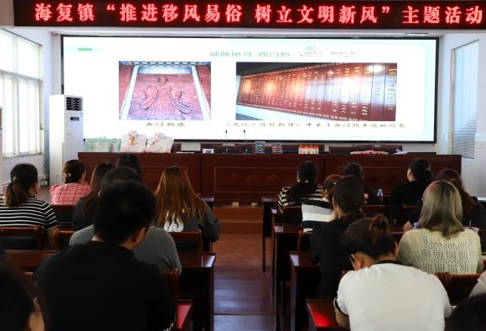 前期,海复镇创文办向各村征集了移风易俗主题短视频,各村群策群力、自导自演,本次活动在各村的报送作品中评选出了六部优秀作品进行集中展示。