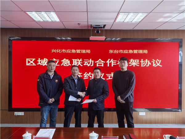 为加强两地突发事件应急联动机制建设,提升协同应对跨区域突发事件综合能力,促进优势互补,12月9日,东台、兴化两地应急管理部门进行深入交流,就建立健全跨区域应急联动机制,提高应急处置效率与协同作战能力,实现信息、资源、技术、队伍等全方位共享与协同调配,强化跨区域突发事件监测预警、应急响应、救援处置、恢复重建等全过程合作等工作,东台市应急管理局与兴化市应急管理局成功举办区域应急联动合作框架协义签约仪式,两地应急管理部门相关负责人参加。