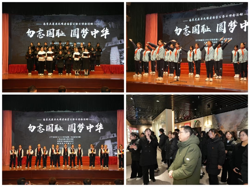 大中小学的学生代表依次发言,从各自的角度阐述了对历史的思考与启示。江苏经贸职业技术学院学生朗诵《和平宣言》、中小学生分别合唱《我和我的祖国》《如愿》,用多种形式寄托悼念之情,传递珍爱和平、勿忘国耻的坚定信念,表达振兴中华的信心决心,引发现场观众的强烈共鸣。