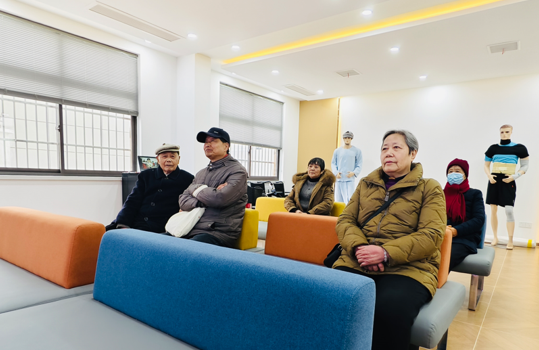 棋牌室对面是中医院健康服务点,长者驿家在之前其他养老服务中心的基础上,增设了中医服务、心理咨询等内容,每两周就会有启东市中医院的专家来开展一次科普义诊活动,他们擅长神经外科、高血压、高脂血症、骨质疏松等各类疾病的治疗和预防,可以为社区居民提供全方位的医疗服务和健康咨询。