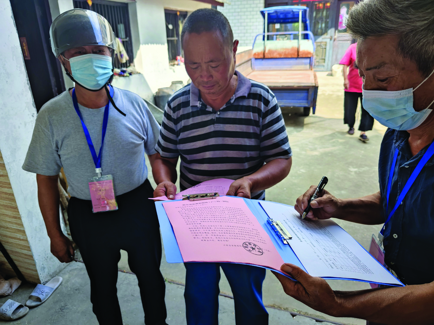 工作人员对养殖户进行种质资源普查询问。 丁佐春 摄