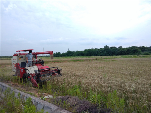 中国江苏网讯 6月3日傍晚,句容市华阳街道吉里村原吉龙窑厂复耕土地上,几台大型收割机轰隆隆的在田间作业,望着一片片金灿灿的麦田,吉里村干部脸上都洋溢着喜悦的笑容。