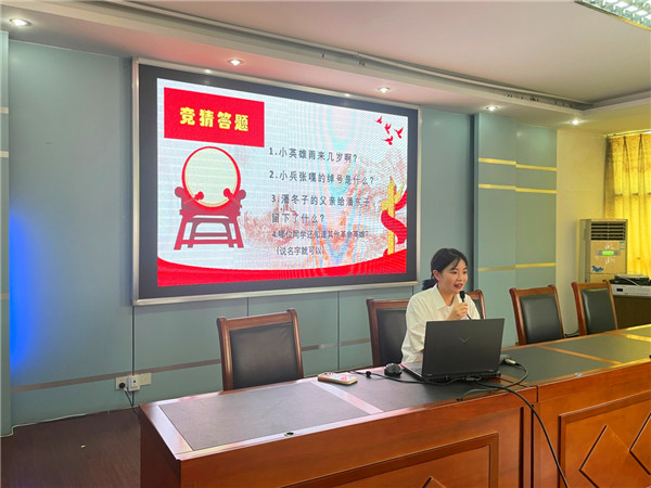 实践队队员首先以视频和文字交错展示的形式,为小朋友们讲解了暑期安全知识。小朋友们认真听讲、积极回答,将自我保护知识牢记于心。随后讲述了张嘎、刘胡兰等英雄的红色传奇故事,让小朋友们对“英雄”有了更深的了解。