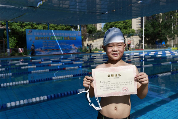 “爸爸,快给我拍照,我一鼓作气游到了第二名!”在句容市游泳馆内,来自实验小学福地路校区三年级的葛子宸同学刚刚参加完句容第九届运动会游泳比赛,举着自己的奖状与家长分享喜悦。