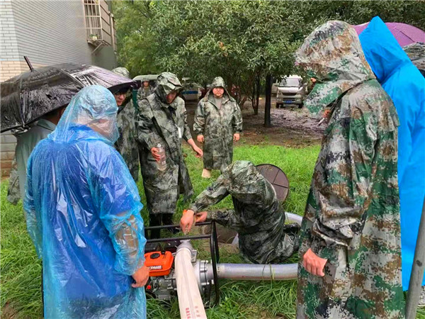 中国江苏网讯 (通讯员永宣)“报告!永兴花苑社区有水位明显上涨,请求民兵队给予支援。”“收到!马上行动!”7月26日,受今年第6号台风“烟花”影响,南通市崇川区永兴街道永兴花苑社区低洼地区出现严重积水现象,永兴街道民兵队接到支援请求后,迅速行动,防汛应急分队迅速赶往现场进行排水作业,疏通内河、内渠,排除风险。