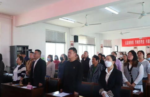 一曲铿锵有力的《歌唱祖国》拉开了本次讲堂的序幕,全体人员齐声高唱,在激昂的旋律中,爱国主义的宏大暖流使会场气氛瞬间热烈起来。