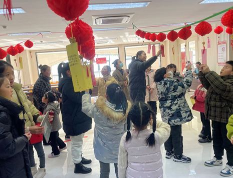 猜灯谜是每年元宵节社区的保留项目,也是小朋友们最期待的环节。一条条彩色的谜面穿插在灯笼里,种类繁多,生动有趣,既具娱乐性,又具知识性。孩子们穿梭于灯笼和彩纸谜语间,或驻足沉思,或激情讨论,活动现场时时传出猜出谜语的欢呼声,热闹不已。