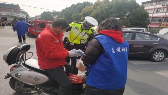 新江苏·中国江苏网讯(通讯员 全国平 沈宝华)为进一步提升群众交通安全意识,共建共享“平安交通”,保障会船节期间交通出行安全。近日,溱潼镇网格员“变身”交通劝导员,配合溱潼交警中队开展“戴头盔、保安全、促文明”文明交通宣传活动。