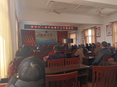 科普环境知识,提升乡风文明。搬场村通过开展党员冬训、道德讲堂等多种形式,组织村干部、小组长、党员、村民群众一起观看人居环境整治宣传视频,同时向出席会议的小组长、党员、村民群众普及垃圾分类知识,引导他们规范投递生活垃圾。