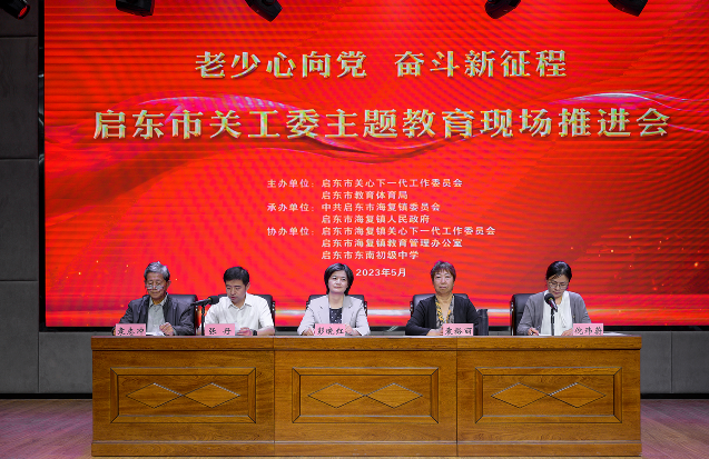 2023年5月18日,启东市“老少心向党 奋斗新征程”主题教育现场推进会在海复镇举办,启东市委常委、组织部部长、统战部部长彭晓红,启东市关工委主任袁裕丽,启东市教育体育局副局长倪玮蔚,海复镇党委书记张丹,海复镇党委副书记车红兵,启东市关工委全体驻会同志,各区镇(街道)关工委常务副主任,启东市级机关关工委常务副主任,启东市教育系统直属学校关工委常务副主任,各镇教育关工委常务副主任等出席了此次会议。