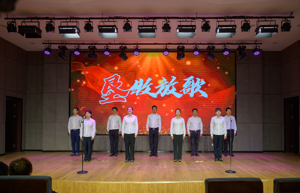 弘扬垦牧文化,传承垦牧精神。在越歌《我们永远不忘记》和舞蹈《长征》中娓娓道来着垦牧故里的昨天与今天。东南中学校长马芳荪为现场观众带来主题党课《回望历史变迁 赓续红色血脉》。