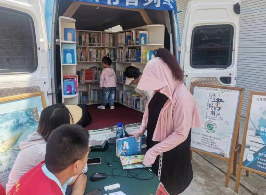 “列车”一到站,就有等候的读者“旅客”迫不及待地走进车厢,寻找着他心仪的图书……,市图书馆工作人员向新来的读者讲解借书证办证流程和图书借还规则。在电子图书展架前,读者拿出手机,扫码阅览电子图书,全神贯注,沉浸其中。“每月定时定点的服务,也让我们农民真正享受到城里图书馆的服务,就好似一个移动式的图书馆开到了家门口了啊!”读者们激动的心情溢于言表。
