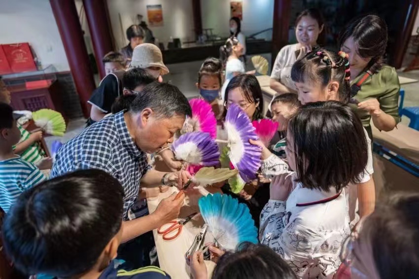 高淳老街“遇见非遗”系列研学活动在高淳非遗展示馆火热进行中,孩子们围绕在高淳木雕(市级非遗)代表性传承人邢志鹏的身边,亲手制作非遗木梳,感受刻刀游走的非遗技艺;在高淳羽毛扇非遗保护基地(响生羽毛扇展销中心),高淳羽毛扇制作技艺(省级非遗)省级非遗代表性传承人邢响生手把手教孩子们制作羽扇,沉浸式体验“非遗守艺人”。雕一手木梳,做一把羽扇,用非遗记忆夏天的味道,暑期周末相约高淳老街非遗馆,“遇见非遗”,传承文化,用“守艺”坚守非遗的传承。