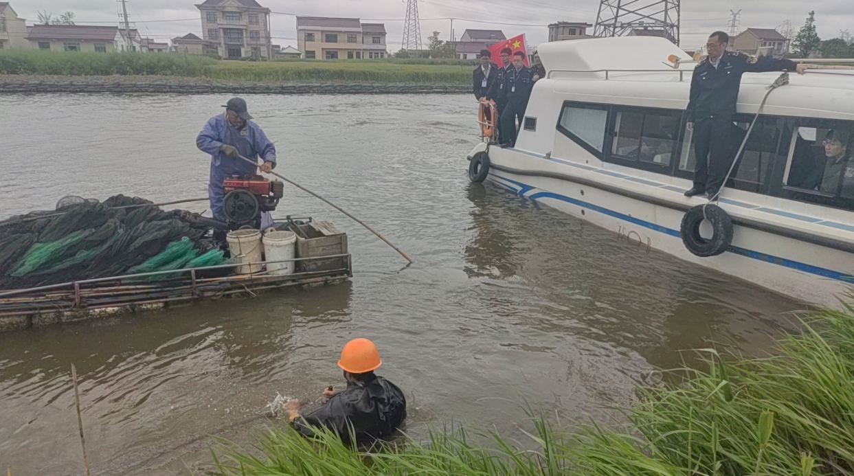 4月26日,由启东市河长制办公室发起,会同市农业农村局、检察、公安、交通、水务等8部门,组成38人联合执法队,开赴市骨干河道中央河东海、寅阳段,实施今年首期网簖地笼及“三无船只”专项清理行动。