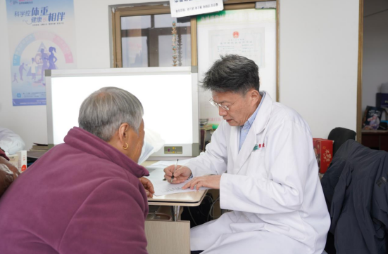 义诊咨询现场,医护人员对前来就诊的老人进行详细的询问身体状况,耐心地为每一位前来咨询的群众提供基础体检服务,包括血压血糖测量、中医诊断等常规项目。同时,他们还根据检查结果,为群众提供专业的健康指导和建议,发放健康知识手册,对有基础疾病的老年人进行登记,提醒他们注意日常饮食、加强锻炼、按时服药等,确保能够实现一对一的贴心问诊服务,帮助群众解决身体健康困惑。