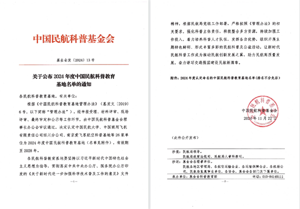 日前,中国民航科普基金会公布2024年度中国民航科普教育基地名单,由省交通技师学院与江苏翔禹航空科技有限公司联合申报的研学基地成功获批中国民航科普教育基地(科技场馆类)。
