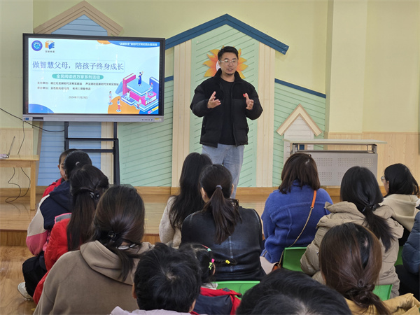 11月29日上午,南通市崇川区永兴街道越江社区、芦泾港社区联合关工委、共青团、妇联、工会等组织携手金色阳光幼儿园,邀请全国讲书人大赛前三强、全民阅读推广人、市图书馆至美阅读推广人成然举办了一场主题为“做智慧父母,陪孩子终身成长”的家长读书会。此次读书会旨在强调家庭教育在孩子成长过程中的重要性,与家长共同探讨家庭教育的智慧之道。