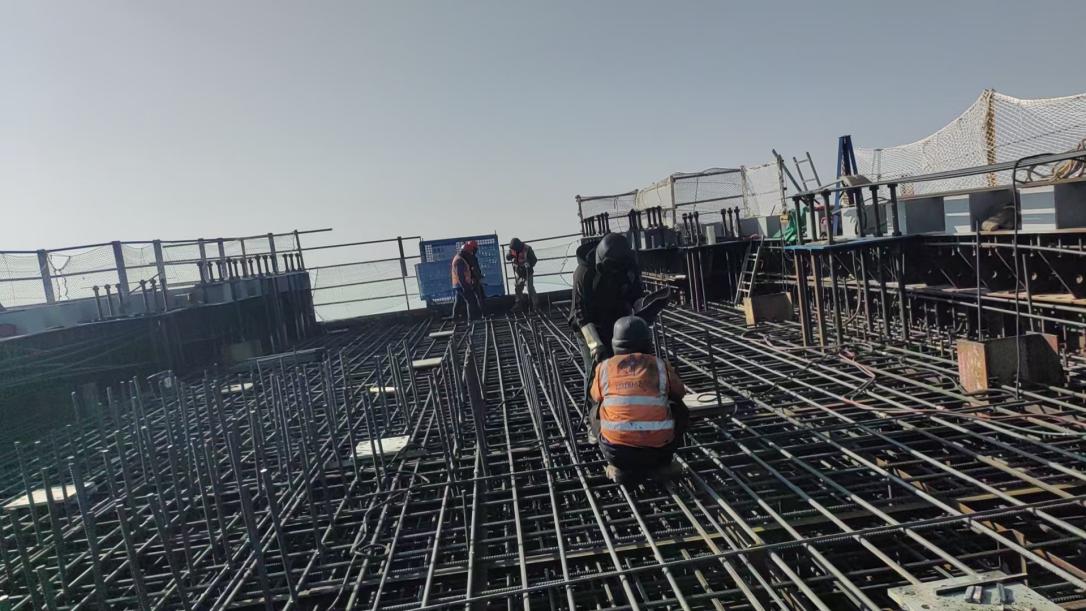 清晨六点,天还没亮透,南航道桥主塔施工队长张维民就召开了班前会。每天这个点,他都会对着视频,一步步布置当日任务、分清每个人的分工,还会一遍遍叮嘱大家,临边防护要做到位、安全带必须规范佩戴。开工后,他又穿梭于各个作业点,紧盯操作规范与施工质量,并把问题记录下来,为第二天做好准备。每日如此,直至日落。