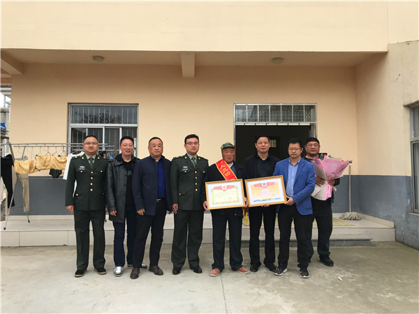 中国江苏网讯 4月20日上午,在腰鼓队欢快的锣鼓声中,一场简朴而热烈的送喜报活动正式开始,由句容市退役军人事务局、华阳街道相关部门干部组成一支“送喜报队伍”从钱家边村委会步行前往现役军人孔文才家,将他在部队荣立三等功的好消息告诉他的父亲及乡亲们。退役军人服务站站长为其家属披挂“一人立功,全家光荣”的绶带,市退役军人事务局局长、华阳街道人武部部长及钱家边村书记分别送上鲜花、慰问金及喜报并合影留念。