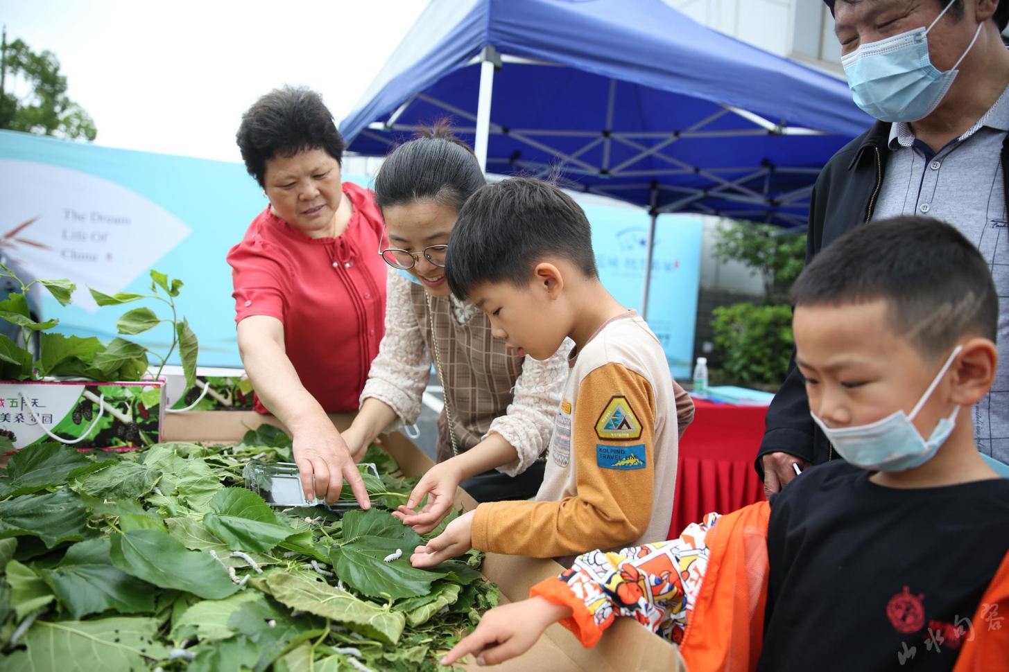 “我最喜欢喝这里的桑果汁,原汁原味。”来自南京的王女士说。针对游客的需求,此次活动推出了桑果汁制作,游客可将采摘的桑葚带至体验区,使用榨汁机现场制作桑果汁饮用,也可品尝农户熬制的桑果汁。除此之外,游客可以参与桑果馒头制作,用桑果汁和面,游客参与榨汁、和面、制作、蒸制、品尝等,可将亲自制作的馒头带回家;蚕宝食叶活动,活动现场准备了蚕宝宝,游客可观察可购买,并有桑叶赠送;巢丝织布,可体验在小型织布机织布;刺绣体验,游客可体验刺绣操作和购买产品。