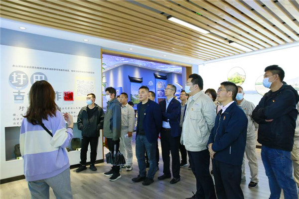 随后,一行人来到赤山湖国家湿地公园,参观“三新映丹湖”赤山湖生态文明建设展陈馆。展馆内,“序章、鸟类天堂、名称由来、前世记忆、诗歌文化、历史变迁、今昔对比、筑圩造田、三新理念、美丽郭庄、和谐共生”等11个篇章生动展示了郭庄-赤山湖片区跨越千年的嬗变史,党员们仔细聆听讲解,用心感受在中国共产党领导下,赤山湖由“与湖争利”“人进湖退”到“退渔还湖”“湖进人退”的沧桑巨变。