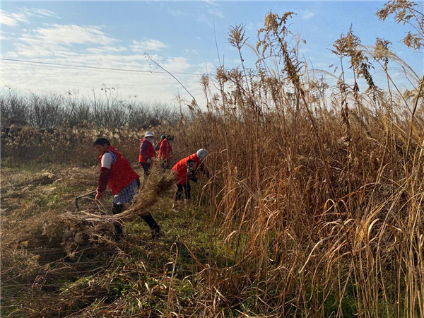 在石狮村,志愿者们分成几个工作小组,充分发扬了吃苦耐劳的精神,手持镰刀和其他工具针对辖区内文昌西路主干道、绿化带、河道两侧等重点区域的“一枝黄花”进行全面清除。