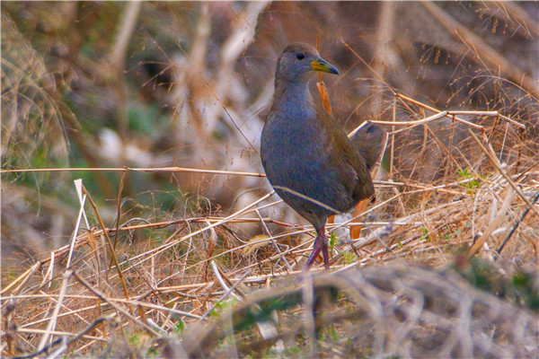 据悉,红脚苦恶鸟是鹤形目秧鸡科鸟类,因叫声类似于“苦恶——苦恶”,且双脚颜色偏红而得名。其飞行能力弱,善于步行、奔跑及涉水,行走时头颈部前后伸缩,尾部上下摆动,喜欢在芦苇或沼泽中栖居,是典型的湿地涉禽。红脚苦恶鸟,主要以昆虫、水生动物、植物种子为食,对农业生产有一定益处。该物种于2000年8月被国家林业局列入《国家保护的有益的或者有重要经济、科学研究价值的陆生野生动物名录》。