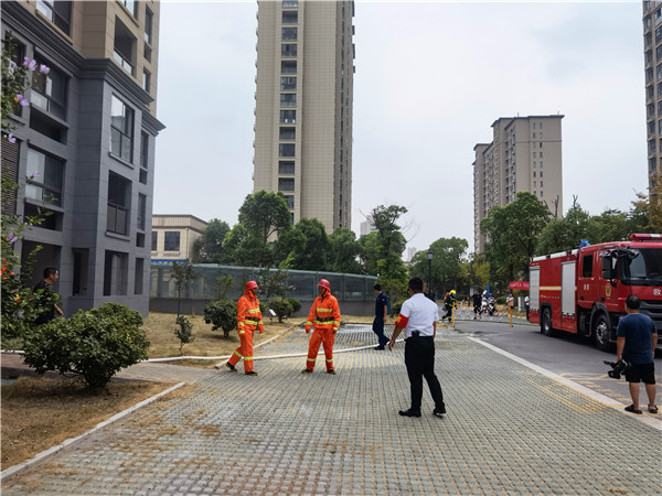 近日,句容华阳街道上路社区联合物业代表、居民代表在上路新居小区内开展消防安全应急演练活动。