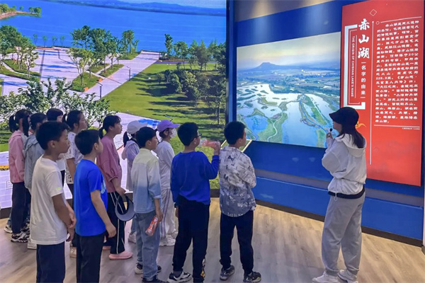 据介绍,近年来,依托丰富的湿地类型与动植物资源,赤山湖国家湿地公园在完善基础设施、丰富活动形式、强化人才队伍、提升宣教能力等方面持续发力,积极举办各类自然教育活动、开展湿地科普课程,打造青少年亲近自然、认识自然的实景大课堂,不断提升自然教育的质量和水平。相继建成湿地科普馆、生态文明建设展陈馆、水韵文化展馆、自然教室等室内教育场所,以及水韵广场、莲文化长廊、露营基地等室外宣教场地,配置完善的标识标牌、解说系统及互动体验配套设施。