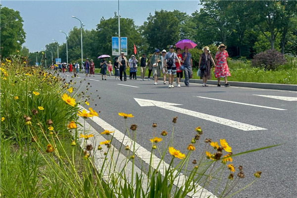 每天都有数百名游客从上海、苏州、杭州、南京等地跟随旅行团来到赤山湖,打卡地标、漫步花海、徒步绿道......饱览湖光山色,徜徉生态湿地。(王维)
